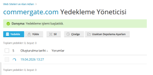 30 saniye kadar bekledikten sonra “Yedekleme işlemi başlatıldı.” bilgilendirmesi çıkıyor.